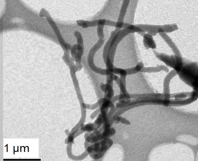 CNFs have been produced by electrospinning, hot filament-assisted sputtering and template-assisted methods although using a catalyst with the CVD method has been frequently employed.12 The remarkable properties of CNFs are dependent on their growth conditions. Based on these traits, CNFs have been used in semiconductor packing applications and building advanced capacitors. Since they exhibit large thermal conductivity, they can be combined as a filler into a matrix of another material such as solders or copper to be used in a thermal interface material.13 ACS Material provides CNFs that have been synthesized with the CVD method which has an outer diameter between 100-300 nm and length between 5-50 µm; the image of the product is shown in Figure 3, below.