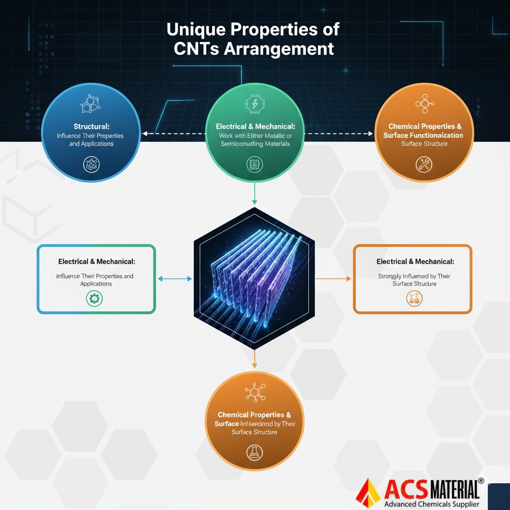 Studies and research show that the structural characteristics of CNTs imperatively influence their properties and applications. Additionally, the factors of the single-walled carbon nanotubes’ chirality and diameter determine their optical and electrical behavior. Their long and thin shape also makes them incredibly controlling of these structural parameters. Mastering these traits enables the specific use of CNTs from advanced biomedical systems to flexible electronics.