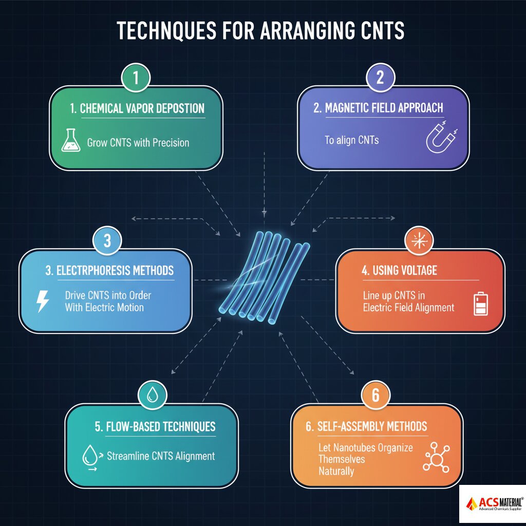 CNTs are exceptional nanomaterials with excellent properties, making them imperative across industries. The precise arrangement of CNTs is mandatory to find out the further potential. Here are different techniques that experts and suppliers use for the arrangement of CNTs.