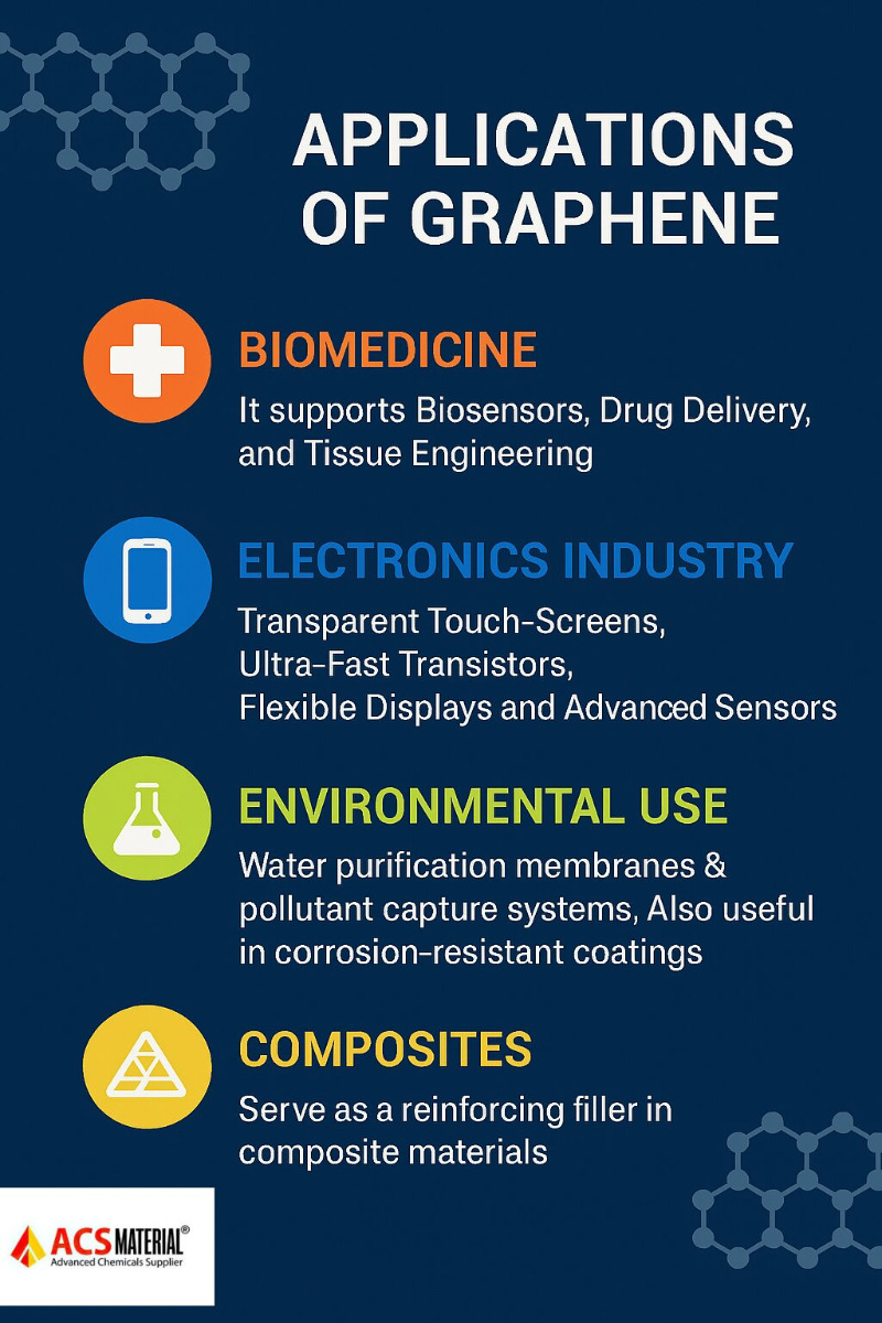 - Biomedicine: it supports biosensors, drug delivery, and tissue engineering with high biocompatibility.